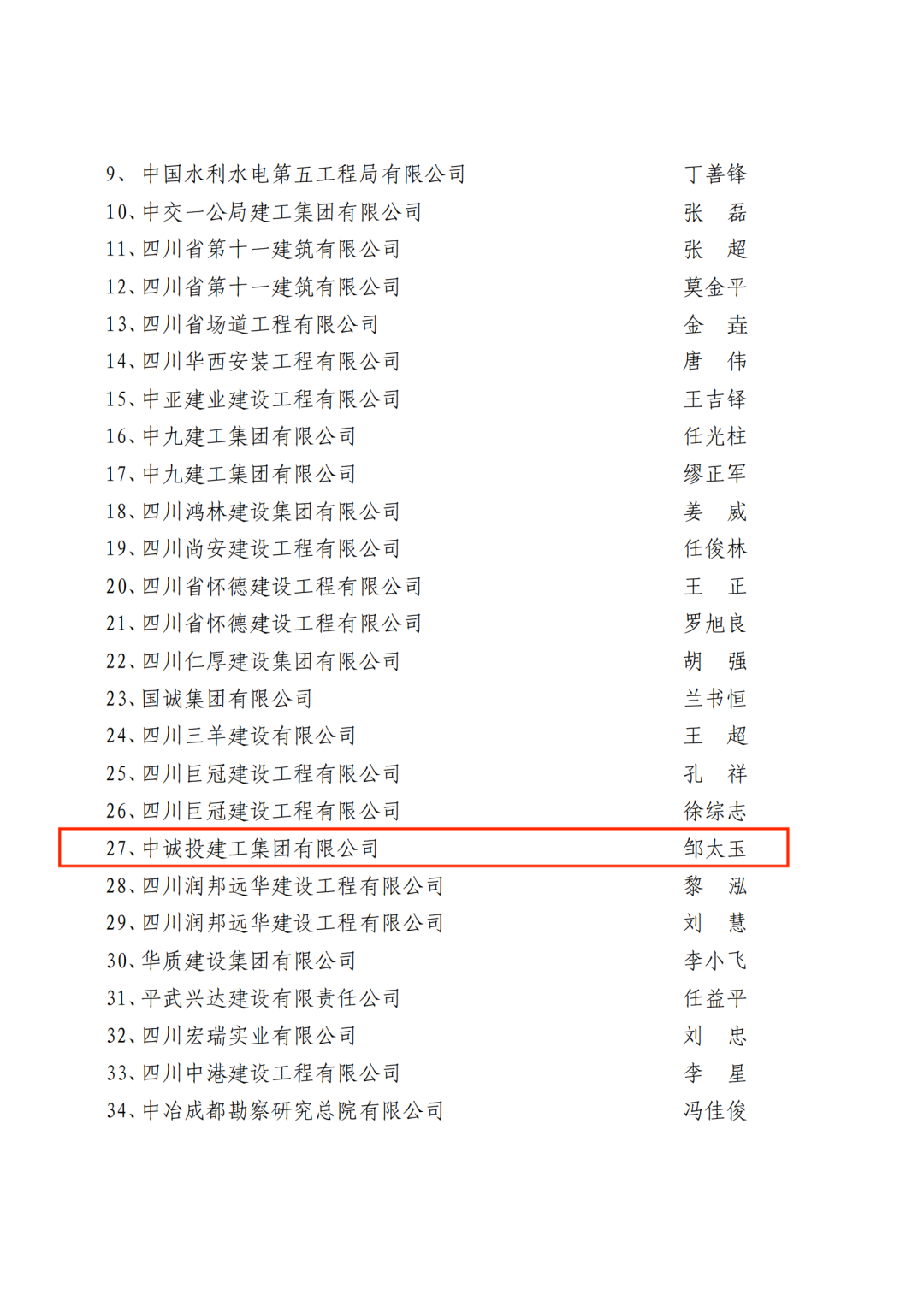 5月15日,住房城鄉建設廳發布通報,對2022-2023年度四川對外開拓先進建筑業企業和優秀個人予以通報表揚,中誠投建工集團獲評對外開拓