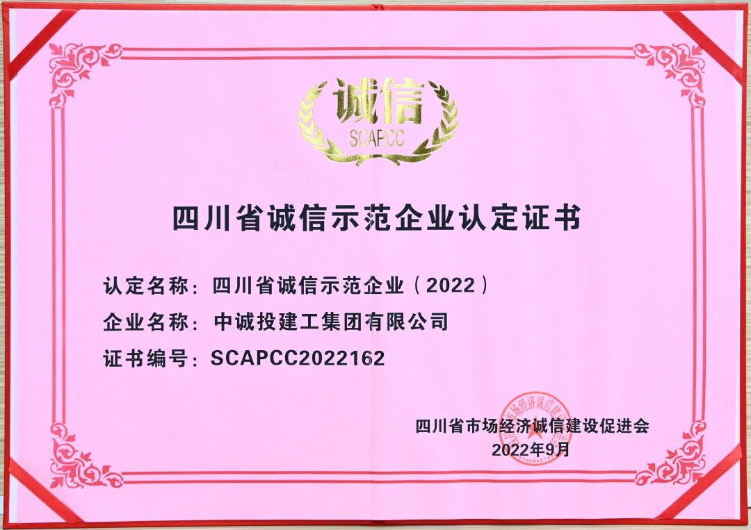 近日,四川省市場經濟誠信建設促進會對外公布2022四川省誠信示范企業認定名單。中誠投建工集團憑借良好的信譽,獲評四川省誠信示范