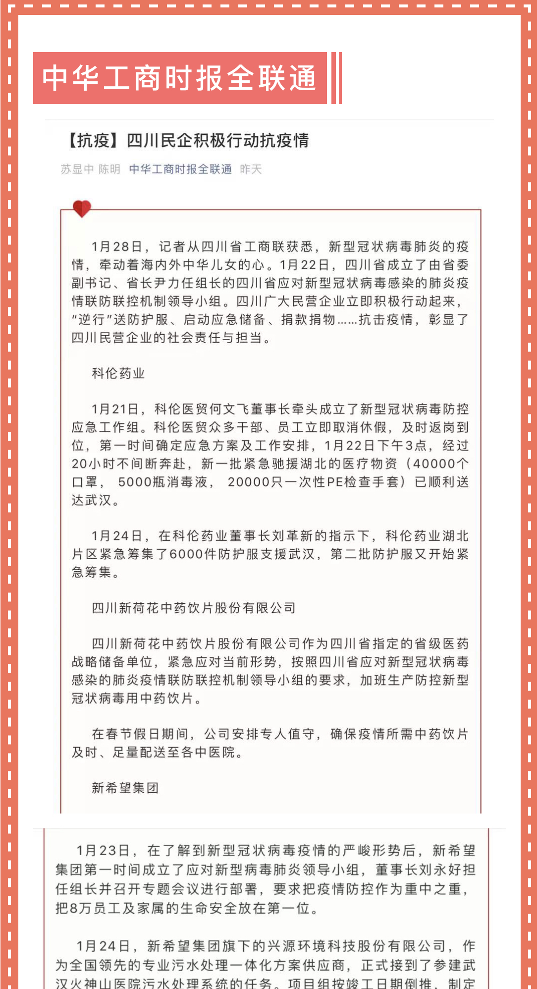 紅星新聞、中華工商時報全聯通、騰訊新聞等多家媒體,均特別報道了集團公司向武漢捐款的消息,高度贊譽中誠投的擔當與善舉,同時,也得到了行業同仁及社會各界的大嘉贊賞。