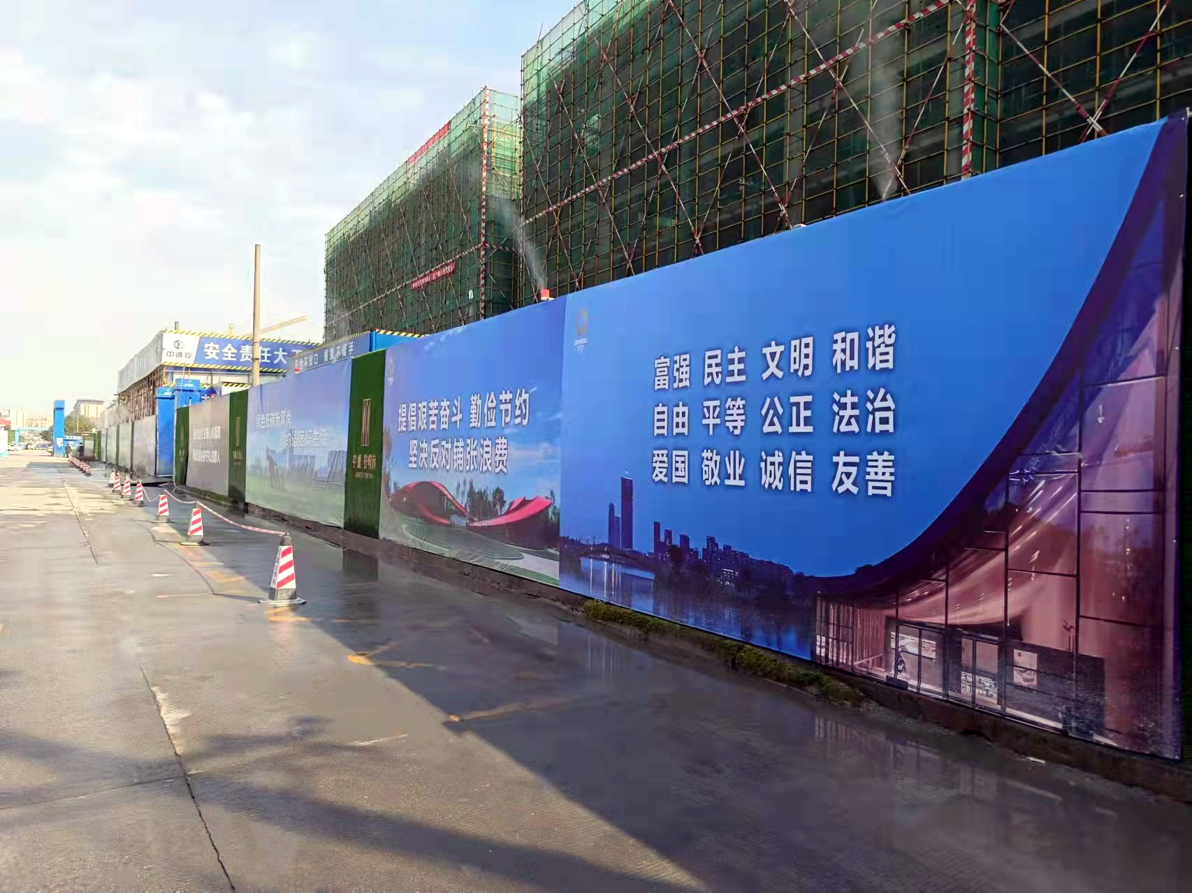 中誠·鉑悅府項目位于成都市武侯區簇橋街道七里村8、9組,總建筑面積9萬余平方米,施工內容包括商業、辦公及配套設施。該項目是集團公司承建的重點房建工程之一,肩負著樹立品牌形象,展示施工能力的使命。項目自開工以來,嚴格對照《成都市綠色標桿施工工地技術標準》,對項目現場嚴格管理。在圍擋(圍墻)設置、施工現場出入口管理、濕法作業、封閉作業、智慧監管、垃圾管理等相關綠色文明施工方面,項目上下齊抓共管,積極采取有效措施,有力確保了綠色施工落到實處。