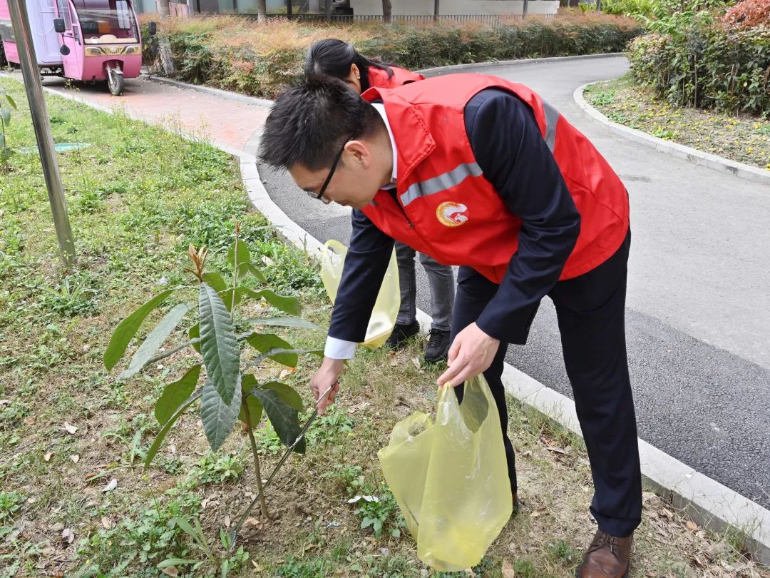 隨后,全體同志穿上紅馬甲,戴上紅袖章,在社區(qū)工作人員的引導下,迅速分為兩個小組,分別進入到七里社區(qū)居民點,對小區(qū)道路、綠化帶進行了“地毯式”清潔。大家彎著腰,拎著垃圾袋,一邊撿拾散落在道路和草坪的垃圾,一邊對隨地吐痰、亂扔垃圾、亂堆亂放等不文明行為進行勸導,引導居民自覺踐行文明行為,主動為創(chuàng)建文明典范城市、喜迎大運會營造良好的環(huán)境和氛圍。同時,大家還一起動手,將小區(qū)門口的共享單車進行規(guī)整擺放,為居民使用單車提供便利。