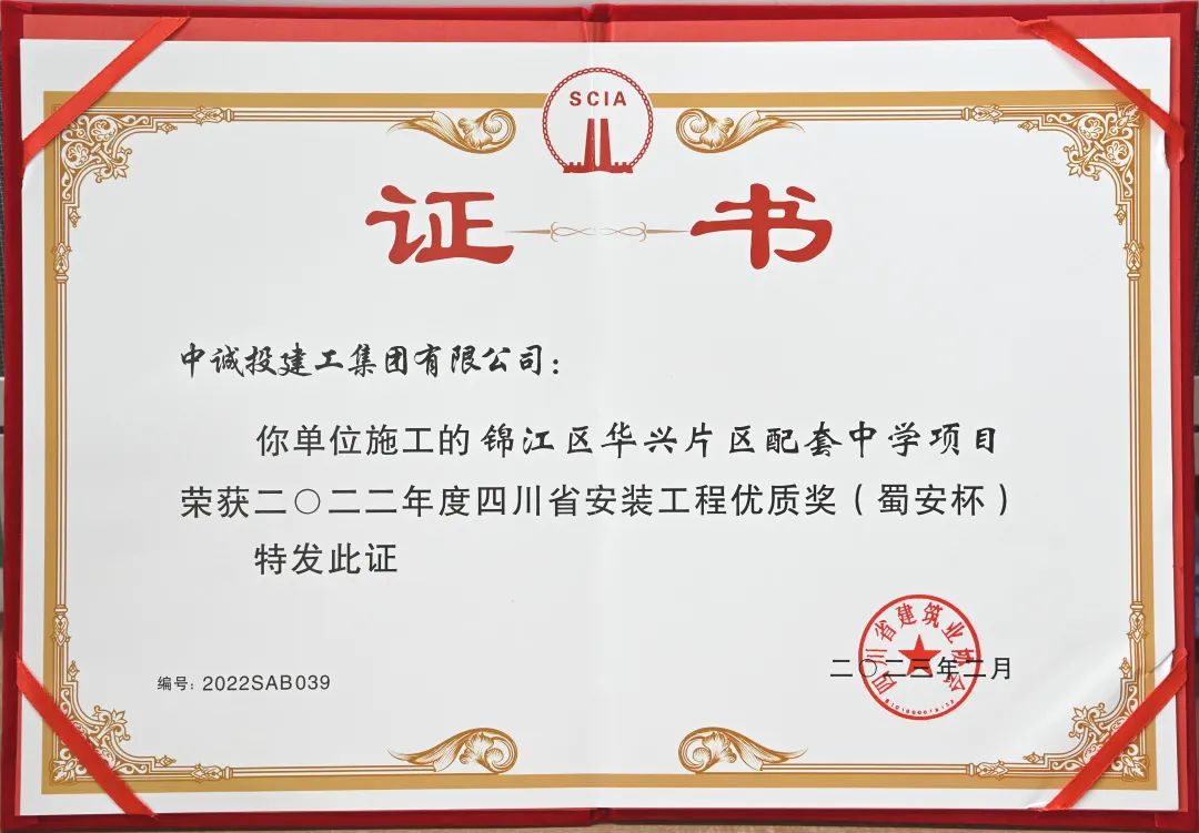 近日,四川省建筑業協會發布《關于表彰2022年度四川省安裝工程優質獎(蜀安杯)的決定》,中誠投建工集團承建的錦江區華興片區配套中學項目獲此殊榮。