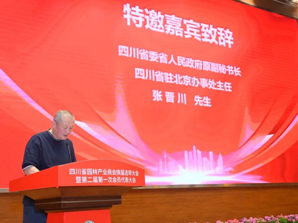 原四川省人民政府副秘書長、省政府駐北京辦事處主任張晉川作為特邀嘉賓代表講話。他向本次大會的順利召開表示熱烈祝賀,并對中誠投建工集團董事長郭代軍當選第二屆會長給予誠摯的祝賀。他指出,園林產業的實質就是綠色產業,綠色是新時代發展的亮麗底色。要發展出中國特色示范現代化風景園林,需進一步強化生態優先,綠色發展的戰略定力,其要久久為功,護好綠水青山,做大金山銀山,讓綠水青山真正成為托起城市綠色高質量發展和區域產業的重要支撐。