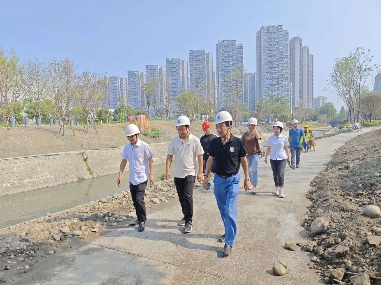 活動中,各慰問小組分別來到華府片區、西部新城、江安河、金康花園、南村公寓、三利廣場、綜保區文化長廊及崇州市城市污水處理廠等成都市內及周邊在建工程項目,為施工一線的員工送去了西瓜、藿香正氣液、板藍根顆粒、涼茶、洗護用品等防暑降溫物資。同時,各小組深入施工現場詢問了解一線員工工作、生活情況,對他們不畏高溫酷暑、堅守崗位、甘于奉獻的勞動精神表示衷心的感謝,并鼓勵大家繼續發揚拼的精神、闖的干勁,弘揚工匠精神,在有序推進項目建設的同時,時刻注意防暑降溫,提高安全生產意識,確保平安度夏。