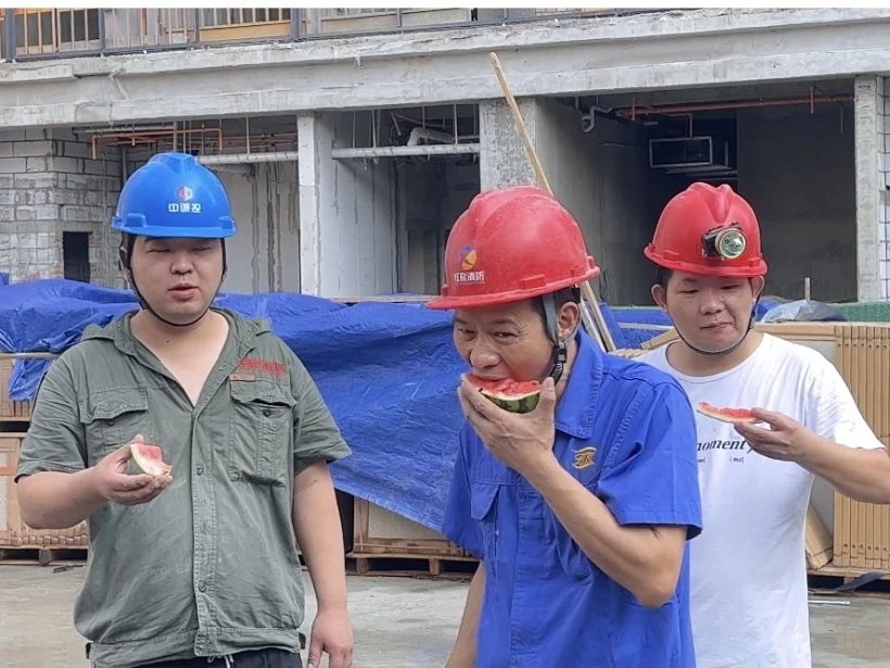 酷暑送清涼,慰問沁人心。此次活動為奮戰在一線的勞動者送去了清涼與關懷,鼓舞了士氣,激發了大家工作的熱情。大家紛紛表示將繼續立足崗位,以更加飽滿的精神投入項目建設,高質量完成各項施工任務。