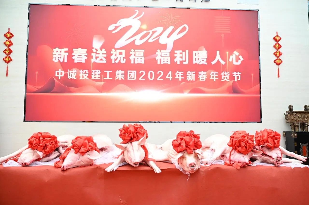 2月6日上午,中誠投建工集團在總部大樓舉行“2024年新春年貨節”,為員工發放豬肉、蘋果、大米、菜籽油等年貨。