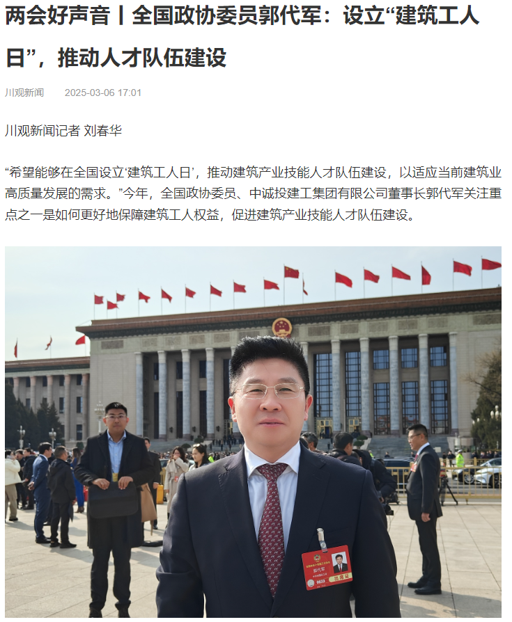 “今年參加全國兩會,我關(guān)注的是如何推動建筑行業(yè)的高質(zhì)量發(fā)展,以及如何更好地保障建筑工人的權(quán)益。”四川省全國政協(xié)委員、中誠投建工集團(tuán)有限公司董事長郭代軍建議,通過政策引導(dǎo)和資金扶持,推動建筑行業(yè)數(shù)字化轉(zhuǎn)型,助力建筑產(chǎn)業(yè)新質(zhì)生產(chǎn)力的培育。進(jìn)一步完善建筑產(chǎn)業(yè)工人的勞動保障制度,加強(qiáng)對建筑工人職業(yè)技能培訓(xùn)的投入,推動建筑產(chǎn)業(yè)工人隊伍向知識型、技能型、創(chuàng)新型轉(zhuǎn)型。(四川政協(xié)報見習(xí)記者:黃笑菲)